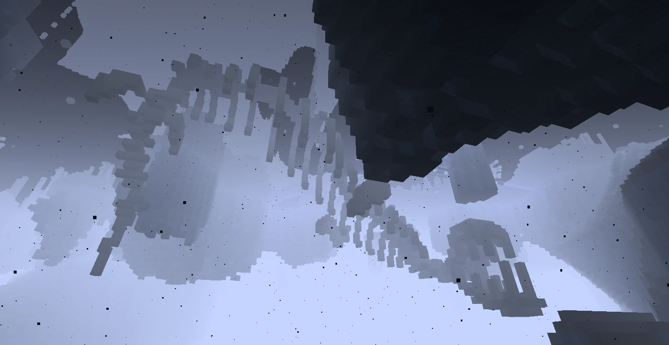 -The Fractured Wastes usually contains a Giant Snowflake structure, which constantly spawn falling shulker bullets and area of effect clouds. A miniboss exists at the center of the structure and drops a powerful trident if slain. Diamond ore also can be found here.