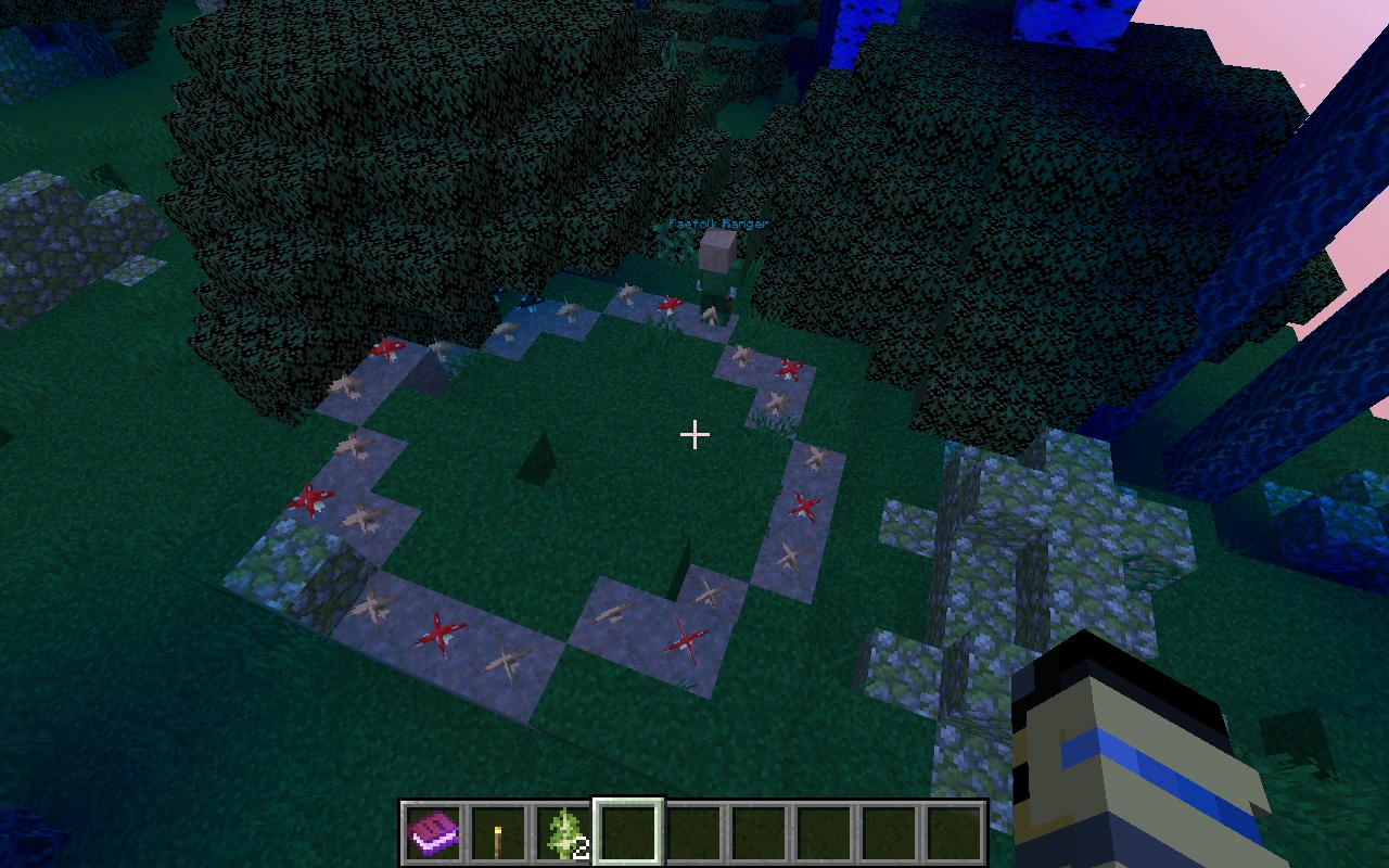 The Mushroom Ring structure is a circle of mycelium blocks that have mushrooms on top of them. A forest ranger spawns inside. You can find this structure in the Wanderight Woods biome.